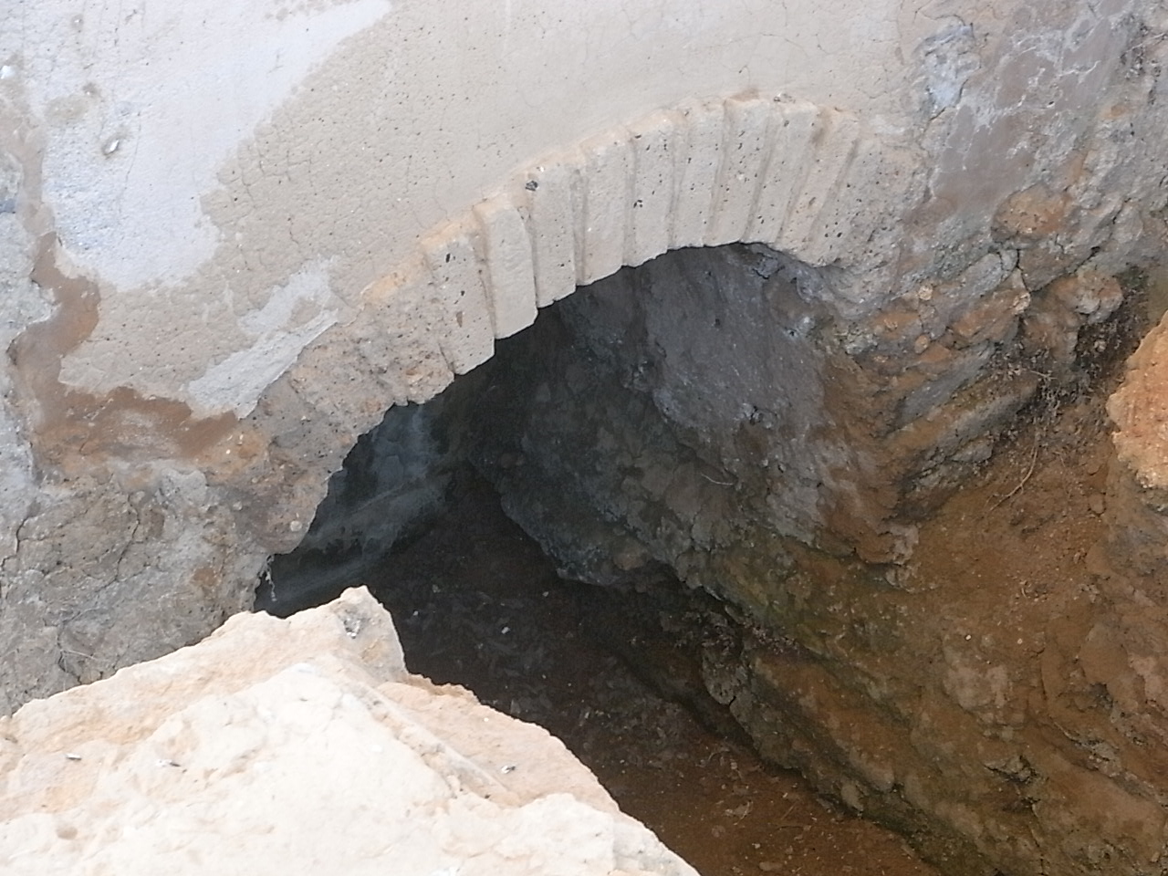 Arco de medio punto parcialmente destruido en una casa del conjunto clasificado de la torre medieval de Mira-rosa. Els Poblets. Foto R.Puig.