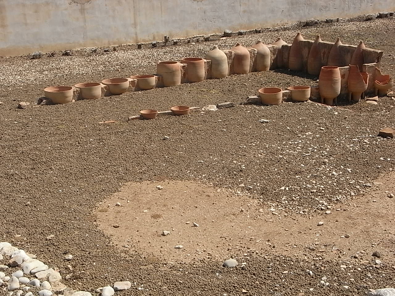 Con una finalidad pedagógica el visitante puede apreciar una alineación (moderna ) de los distintos tipos de ánforas.
