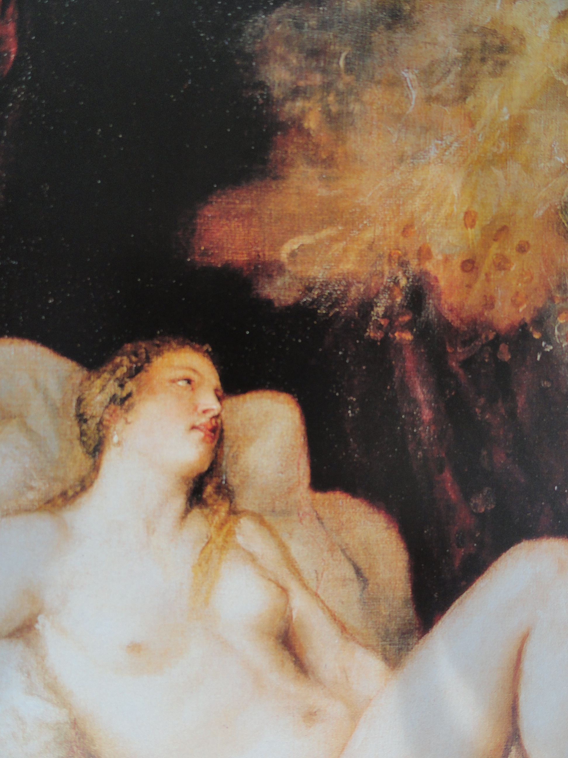 Tanto Tiziano como Fra Angelico, en sus cuadros del Museo del Prado, han escenificado respectivamente, sensual el veneciano y timorato el fraile florentino, la áurea invasión jupiterina y el dorado flujo del Espíritu Santo. Frutos del milagro serán Perseo, el semidiós pagano, adalid de la lucha contra las sombras, y Jesús, el dios-hombre de la nueva era, luz del mundo y redentor de los que yacen en las tinieblas del pecado original.