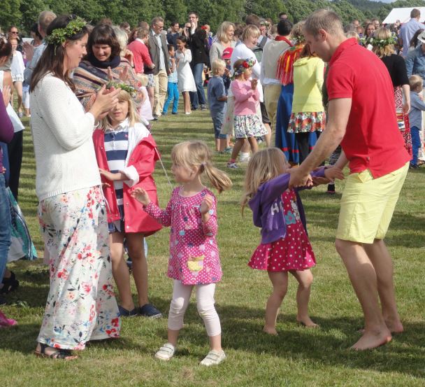 Son varios miles de personas las que vienen a esta celebración tradicional del Midsommar (el solsticio de verano), en estas praderas rodeadas de lagos y de los edificios que han albergado desde hace un siglo y medio las actividades de la escuela y los seminarios de Slöjd (“artesanía”, “trabajo manual”) para el profesorado y el alumnado de la enseñanza general básica (grundskola).