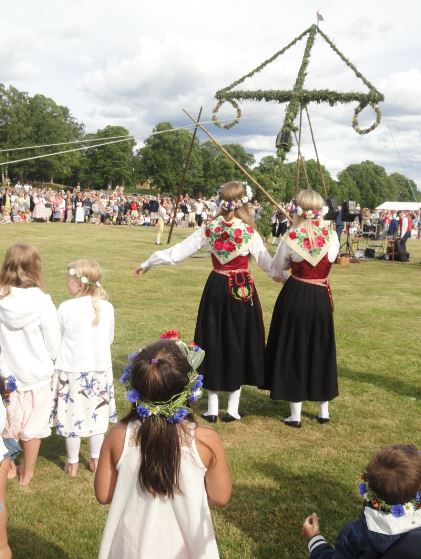 El midsommar deja desiertas las calles de las ciudades suecas. Todo el mundo se va al campo a bailar, comer y divertirse al son de la música popular sueca hasta bien entrada esta noche clara del 20 al 21 de junio. Nos reunimos en torno al midsommarstång, cuyo origen es el majstang (palo de mayo) germánico. Los comerciantes alemanes trajeron esta tradición a Suecia para celebrar el reverdecer cíclico de los bosques y la flora. Como tal, sus orígenes son ancestrales y totémicos.