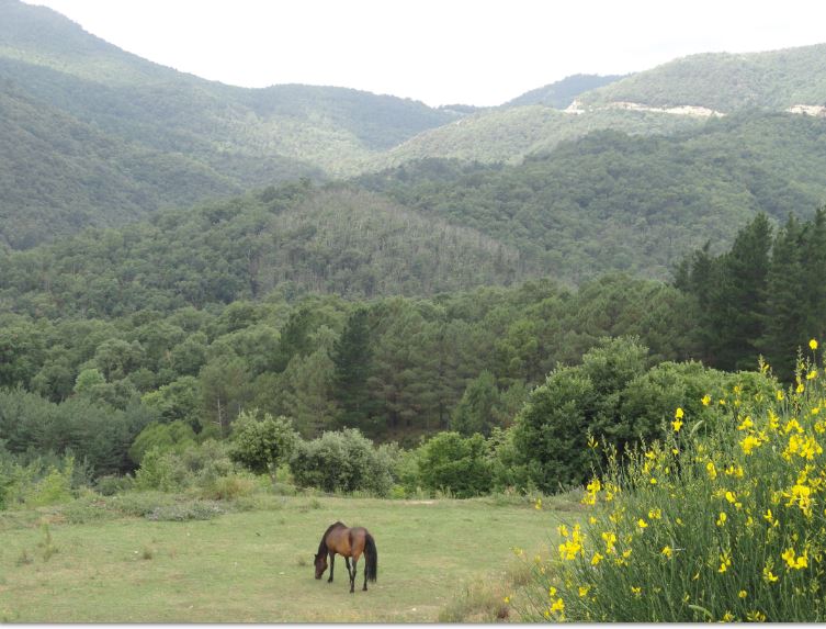 La bajada desde Costoja hacia España nos traslada al Alto Ampurdán sin apercibirnos por otra señal que no se el diferente firme de la carretera, pues las alturas y los bosques del Alto Vallespir francés se funden sin solución de continuidad con los del Alto Ampurdán español.
