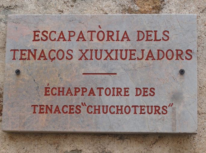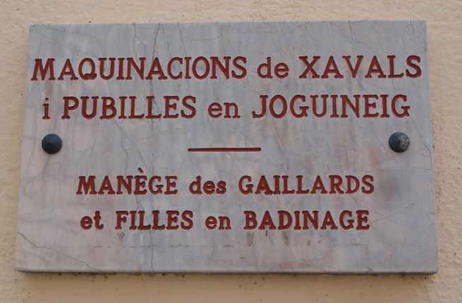 La verdad es que ya me había hecho pensar positivamente la práctica poética de su alcalde. El síndico ha sembrado de placas de piedra los rincones de la comuna con el beneplácito de sus vecinos y para regocijo de forasteros, con los que los nombres de las calles se completan con la espirituosa descripción del uso de los espacios urbanos. Los textos en francés y en catalán son muy abundantes y algunos se refieren a este pueblo en su condición de emplazamiento estratégico sobre una antigua vía romana.