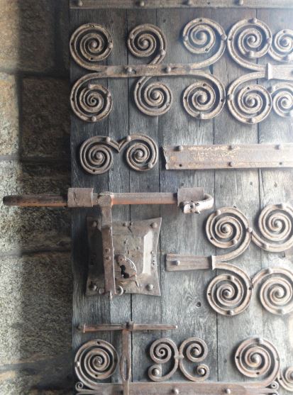 Y los detalles del trabajo del hierro en su puerta son característicos del románico catalán