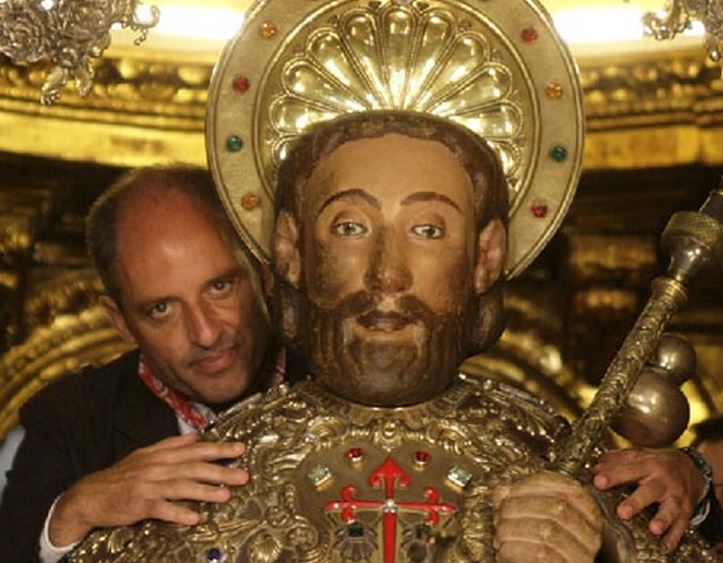 En la mejor tradición de Gianbattista Della Porta, dejadme especular con algunas analogías entre la efigie de Santiago el Mayor, cuyo sagrado leño tantas ilustrísimas y peregrinos han abrazado y a quien tantas supremas magistraturas han ofrecido la nación (sin pedirnos permiso). Pienso que no me excedo en ello (nada del abrazo de Siva y de otros mitos escabrosos).