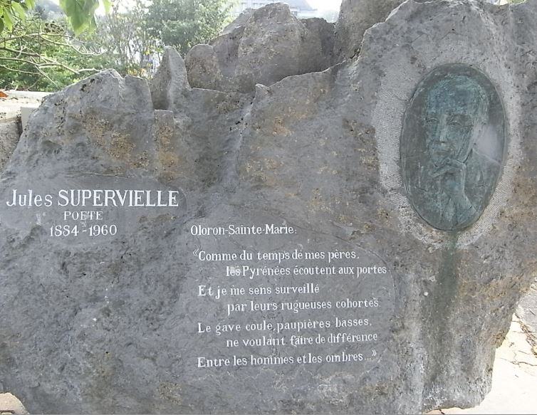 A Supervielle se le recuerda al borde del Aspe, sobre una roca, no lejos del parque dedicado a los españoles que huían de la represión franquista, y a un tiro de piedra, en la otra orilla, de la casa donde en el intervalo de pocos días murieron, primero su madre y luego su padre.