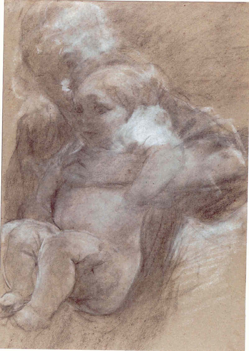 Los dibujos de escenas de maternidad del español son retratos de intimidad familiar, los del italiano son inquietantes composiciones preparatorias de alguna de sus madonnas con el niño, misteriosamente desacralizadas, donde los ojos abren ventanas a un vacío interior.