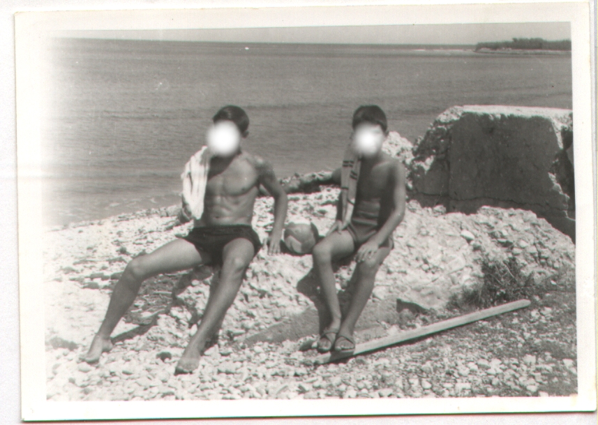 En los restos de una garita forificada junto a la orilla en 1966. Cortesía de Pere Cardona