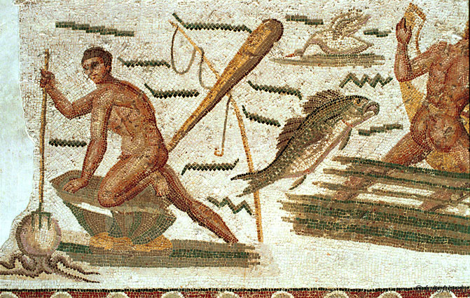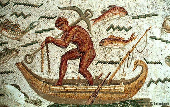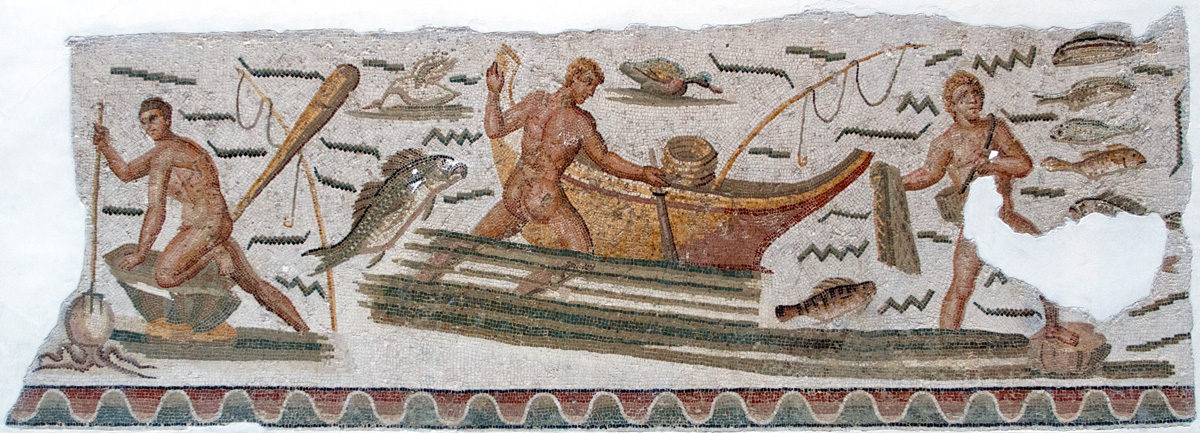 La pesca en época romana. Mosaico Museo del Bardo. Tunez. Fuente Wikimedia