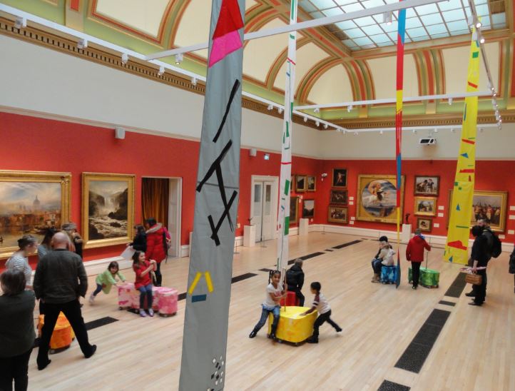 Hoy, el Imperio Británico pasó a la historia y los niños encuentran instalaciones de su gusto frente a esos cuadros que ornaban las paredes de la burguesía y la aristocracia victorianas, en esta ocasión rodando sobre el piso de madera de la sala, empujando unos ruidosos y pesados carricoches