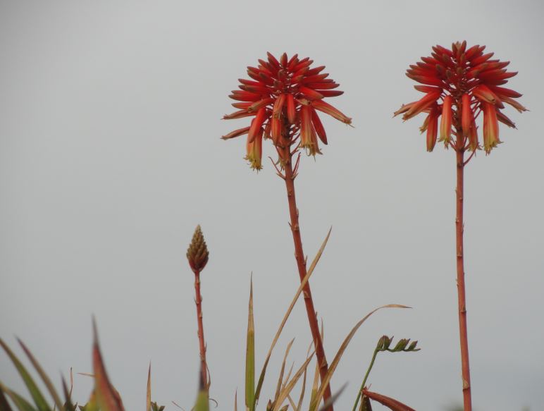 La semana se ha ido en un suspiro y, entre unas cosas y otras, sin escribir nada de serio, he llegado sin pena a hoy domingo, aunque transitoriamente cojitranco. En definitiva, que he estado poco andarín. No por ello he dejado de recoger algunas modestas glorias que al observador atento se regalan. Son esas nimiedades las que de nuevo me permiten el cumplimiento del precepto dominical que me he marcado; como esas flores de la imagen que inicia esta crónica, que se alzan curiosas sobre sus tallos a modo de avestruces vegetales, observándome tras las vallas de un jardín de la Partida de La Almadraba.