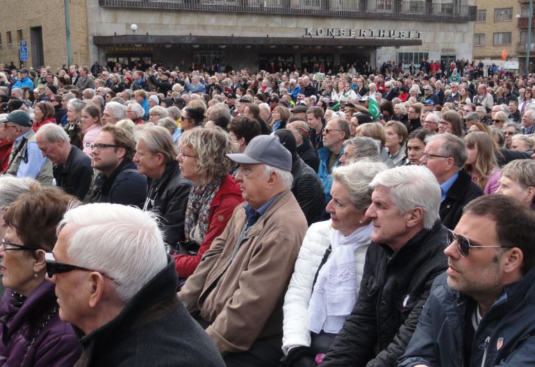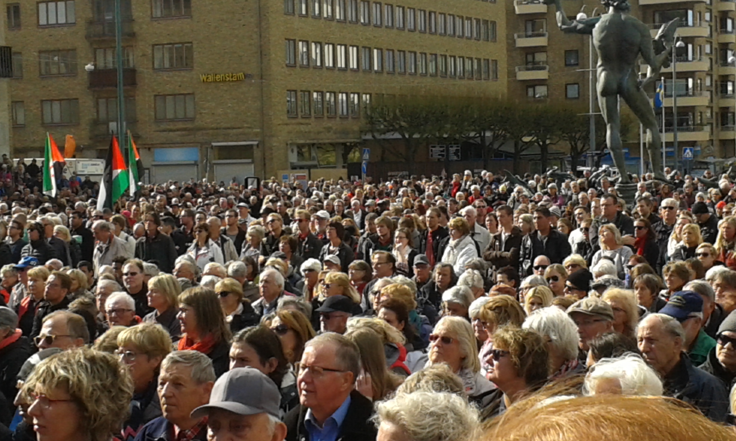 Por supuesto, son ellos los que cerraron la manifestación en el lugar más representativo de la ciudad, la Götaplatsen, que preside el Poseidon de Karl Miles.