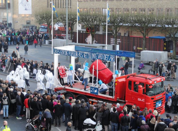 En Gotemburgo es la Escuela de Ingeniería con su variopinta y larguísima cabalgata mecanizada la que garantiza la tradición.