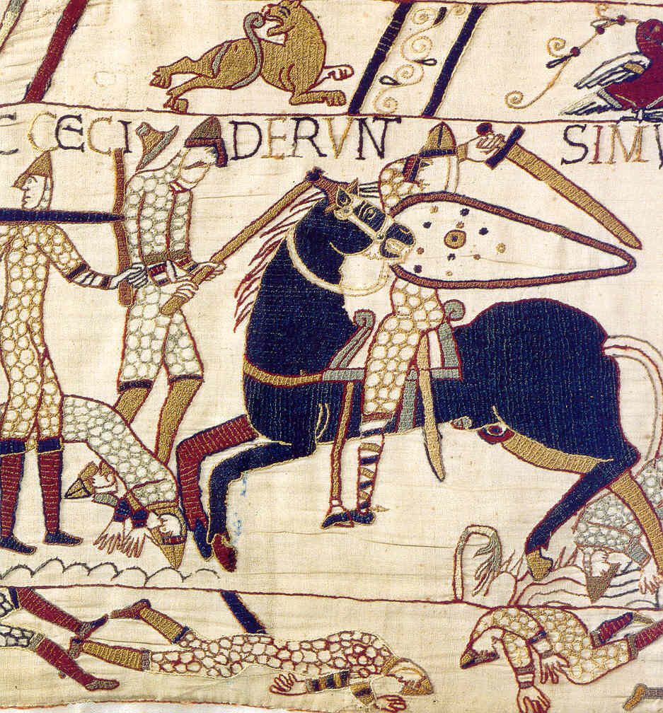 Como describe el tapiz de Bayeux, los infantes sajones salieron a recibirles con hachas y la cosa no estuvo clara de ninguna forma, como solía suceder en estas masacres cuerpo a cuerpo del Medioevo, hasta que a los mejor organizados, o posiblemente a los más brutos y menos fatigados, les sonrió el triunfo.