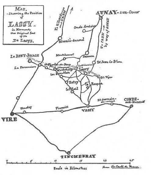 En el libro de Edward De Lacy-Bellingari se describe Lassy y sus alrededores en términos parecidos, incidiendo en la antigua historia de este lugar del que tomaron su nombre dos señores feudales, Gautier e Ilbert de Lacy, quienes con los hijos del primero, Rogier y Gilbert, partieron a Inglaterra con el Duque Guillermo de Normandía, el Conquistador, para disputar el trono usurpado por Harold, a la muerte del rey Eduardo. Tomaron parte en la batalla de Hastings en 1066, para luego quedarse.