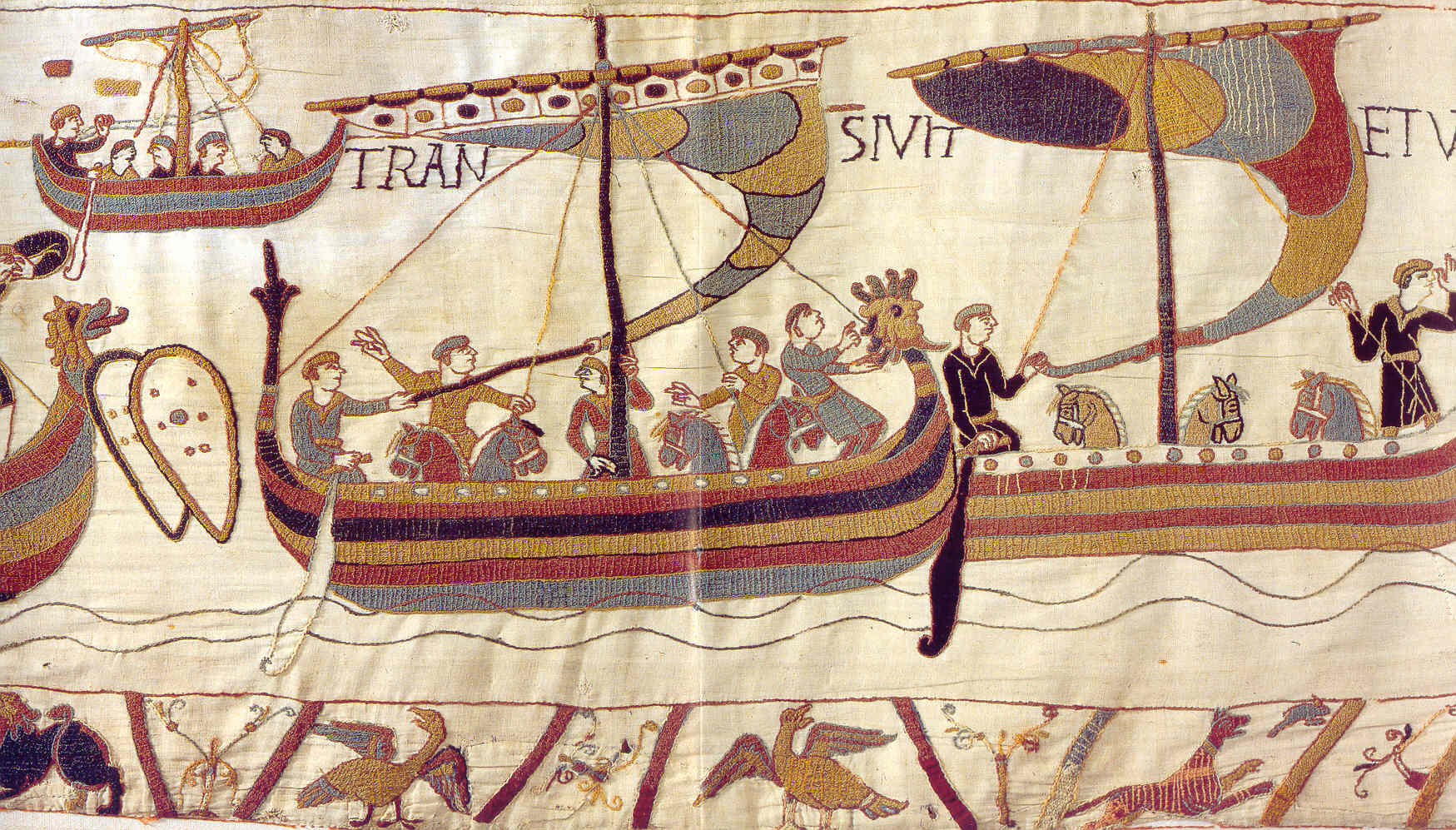 Como narran las célebres colgaduras del llamado tapiz de Bayeux (más de cincuenta metros de tela bordada que se colgaban en la catedral en las fiestas principales), toda esa tropa partió a luchar contra los sajones embarcada en numerosas naves, similares a las de sus tatarabuelos vikingos. No fracasaron como Felipe II, quien les imitaría siglos más tarde con su armada invencible, pero tuvieron que aguardar en una playa durante tres semanas a que se levantara un viento favorable.
