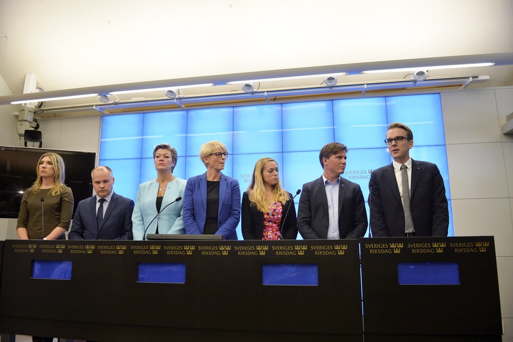 Anuncio del consenso de seis partidos suecos para la gestion de la crisis de los refugiados. Foto Vilhelm Stokstad. Svenska Dagbladet