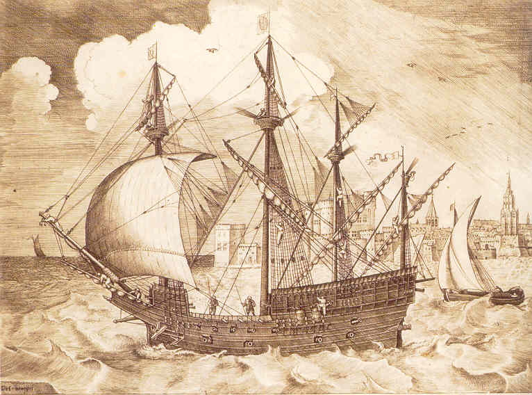 Navio zarpando. Grabado de Franz Huys basado en dibujo de Bruegel. Biblioteca Real de Bruselas