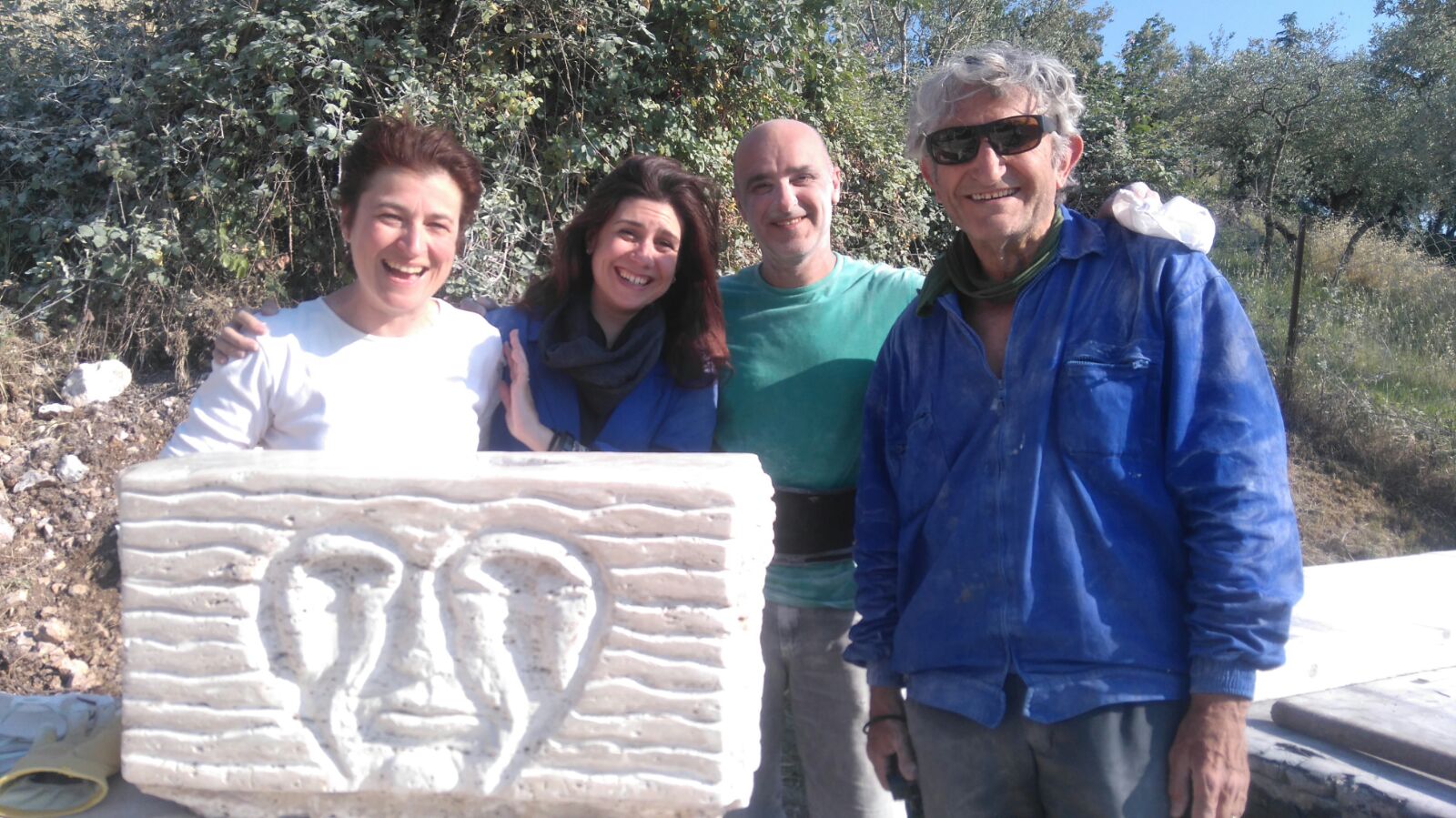 Están siendo días de polvareda. Esculpimos al aire libre. Hemos venido no sólo de Roma, sino de la Facultad de Bellas Artes de Altea en España.