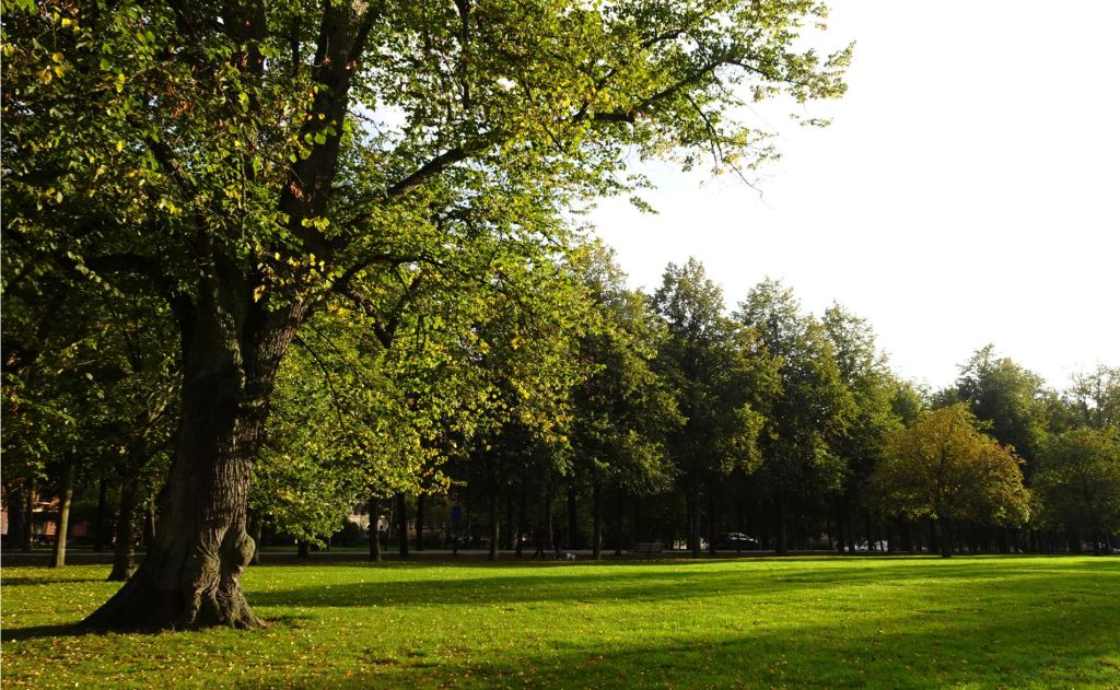 sobre praderas de césped donde algunos árboles tienen sus propios cortesanos