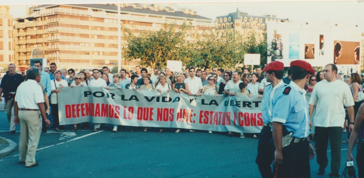 Yo era un simple joven comprometido con la defensa de la libertad y de la democracia. Por decirlo de manera menos elevada, me indignaba que ETA asesinara a conciudadanos inocentes por el simple hecho de pensar diferente, así que, en lugar de mirar para otro lado, participaba en las concentraciones que se convocaban después de cada asesinato. Tampoco fue gran cosa, pues era lo mínimo que uno podía hacer (aunque casi nadie lo hiciera). Sí tuve ocasión de participar de manera más comprometida en Denon Artean Paz y Reconciliación, junto con Cristina Cuesta o Iñaki Arrizabalaga, entre otros, desde donde pudimos organizar la primera (y última) manifestación de “La juventud vasca contra ETA”. Fue a mediados de los años 90. Ocasionalmente escribía “Cartas al Director” contra el terrorismo de ETA en El Diario Vasco. Y participaba en las manifestaciones convocadas por Basta Ya.
