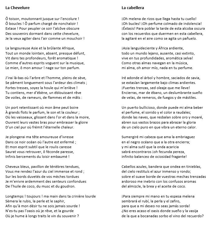 VERSIÓN BILINGÜE FRANCÉS – CASTELLANO DE «LA CHEVELURE» – «LA CABELLERA