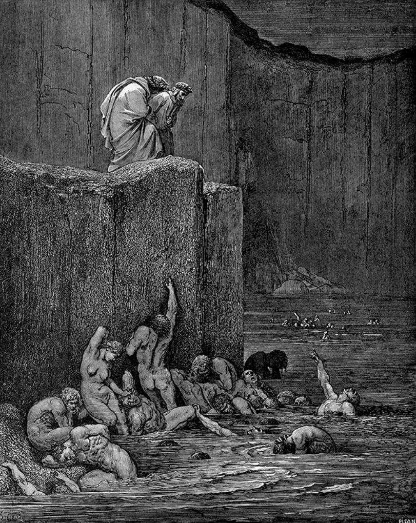 Por hoy terminaremos con otro lago dantesco -pero ahora de mierda- en el que penan los aduladores.