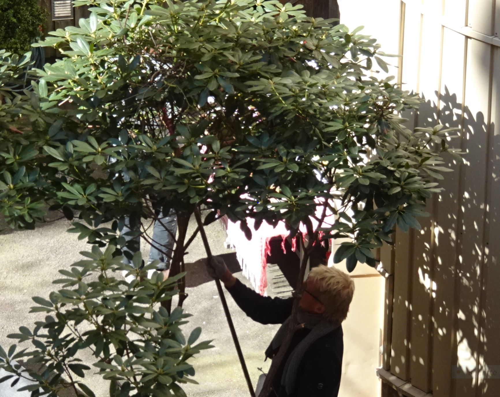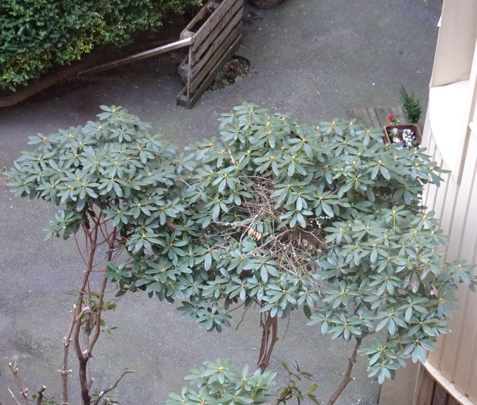 Cuando el 11 de abril detallaba en estas páginas la construcción del nido por una pareja de urracas, a las que apodé Urrico y Urrica, los rododendros sobre los que se situaba eran bien frondosos y apuntaba ya su floración. Pero apenas una semana después procedieron a una severa poda de los mismos. Dos o tres de ellos subsistieron, sin embargo los podadores contratados (profesionales) respetaron el nido.
