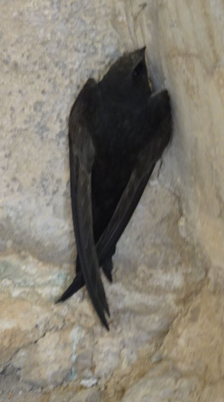 Sin embargo, los pájaros sí que incursionan en la torre a través de ellos, en especial las inquietas golondrinas, con el resultado inevitable de no poder encontrar la vía de salida. Se dan repetidos e inútiles testarazos contra los paneles de metacrilato por los que se ve la luz y el entorno exterior, hasta que exhaustas se refugian en un rincón, como la que encontré atontada en el piso superior de la torre con la cabeza cubierta de polvo.