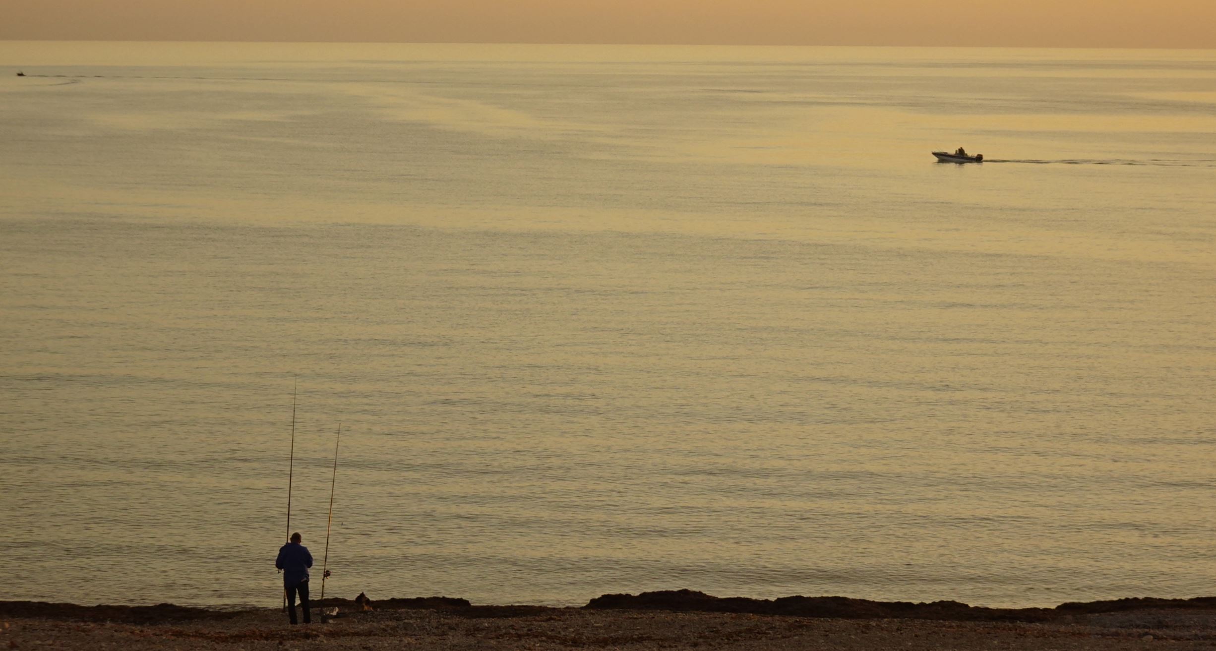 Este madrugador instaló sus cañas en la orilla cuando el sol no había aparecido, a la espera de que alguna lubina se dignase morder el anzuelo…