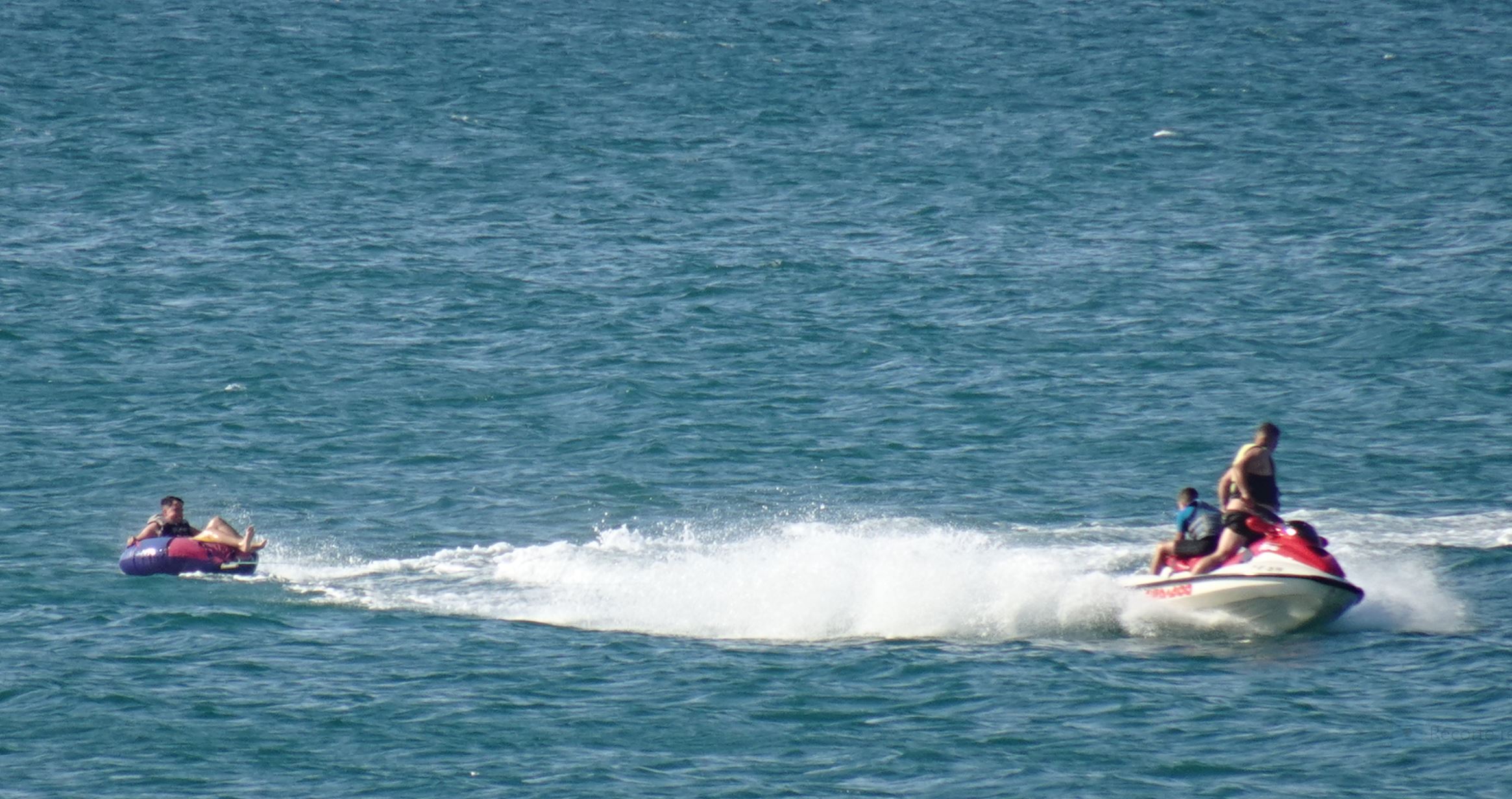 Cuando los motoristas acuáticos se exhiben, no conviene alejarse nadando de la orilla, no sea que te hagan picadillo…