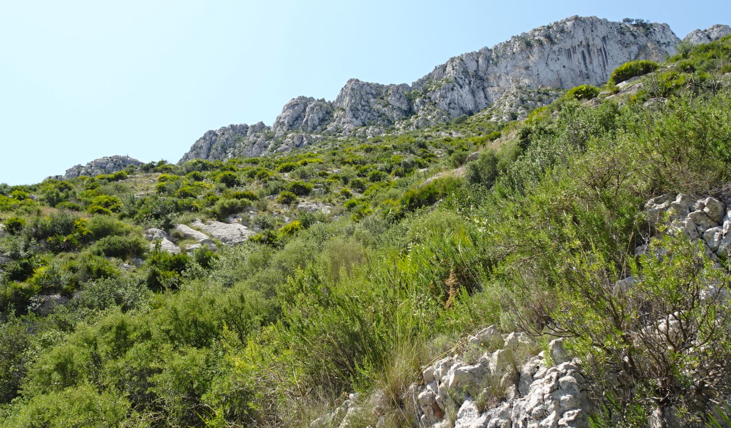Esa fue la dirección que adoptamos hace dos días, para ir ascendiendo sin perder la vista del mar y de las huertas de El Vergel, con la sensación de sobrevolar la carretera nacional y la Autopista Ap7.