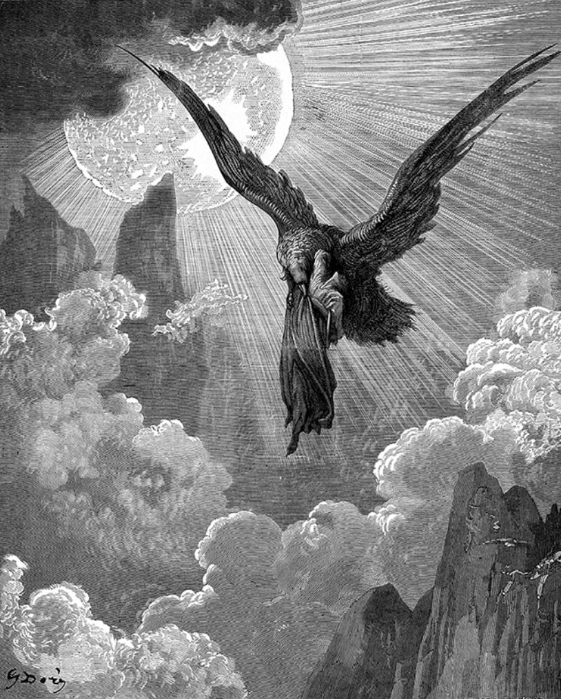 Gustavo Doré. Un águila me raptó hasta el fuego. Divina Comedia, Purgatorio, IX, 29