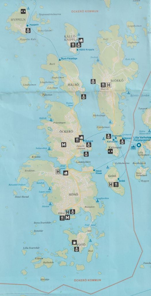 Una semana en una stuga (cabaña) en la isla de Öckerö, que da el nombre a un territorio comunal del archipiélago norte (norra skärgården) de Gotemburgo ofrece descubrimientos y agradables paseos. De una isla a otra se pasa o por puentes o por transbordadores gratuitos. En la mochila algunos bocadillos, un termo de café y, por qué no, una pequeña nevera con alguna bebida fría. No faltan algunas playitas entre rocas para tomar un rápido baño refrescante, en especial si luce el sol, ni restaurantes y pequeñas tabernas, incluso alguna pizzería y hasta un kiosco take away de comida tailandesa.