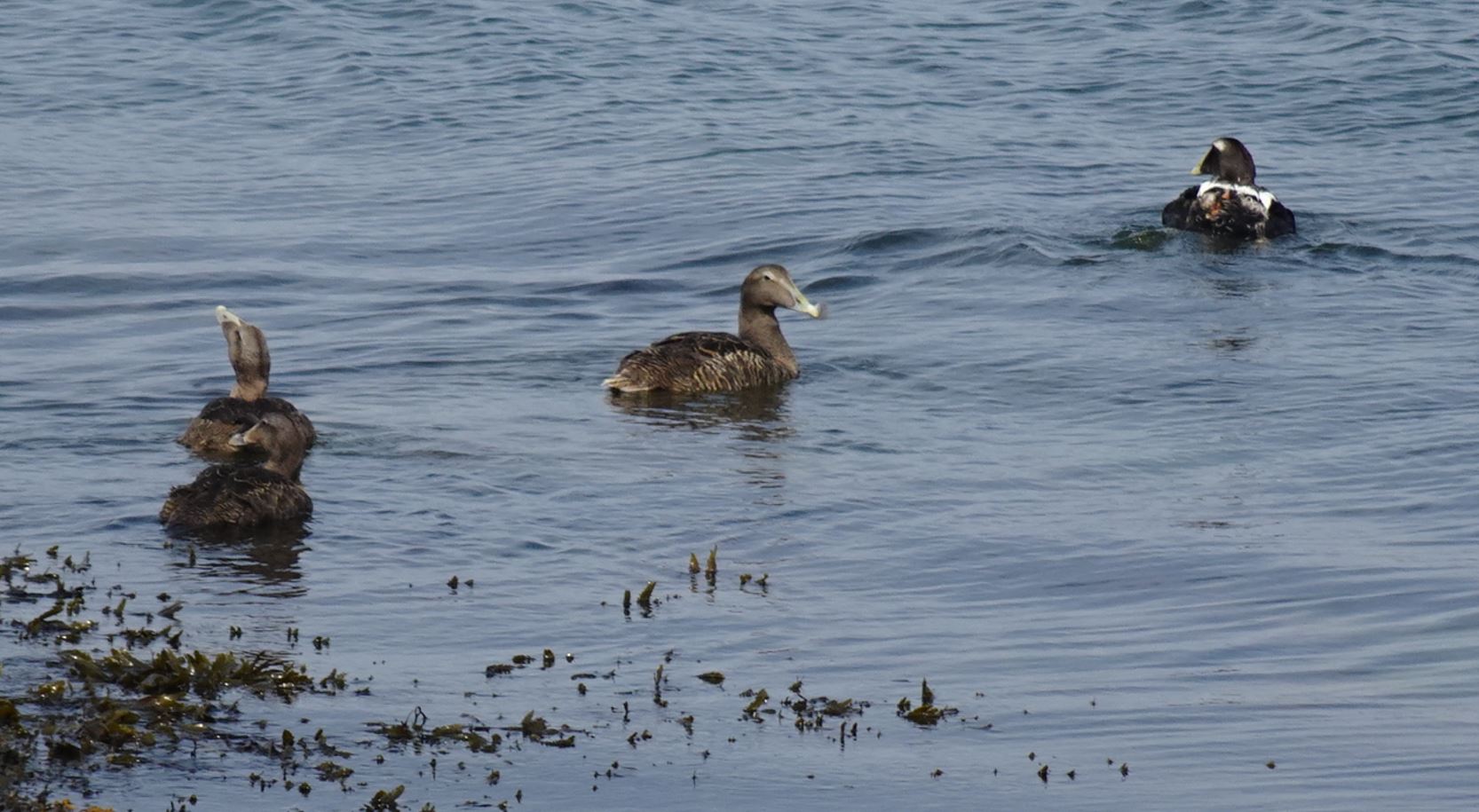 En una de esas pausas de refrigerio, sentados en una roca de la isla de Hälsö, al borde del fiordo de Källö Knippla, con la isla del mismo nombre enfrente, pudimos observar las idas y venidas de una familia de patos marineros. De vez en cuando, siguiendo al papá pato, se zambullían en la corriente desplazándose de una roca a otra, indiferentes a los veleros, guardacostas y transbordadores que navegan por la zona.