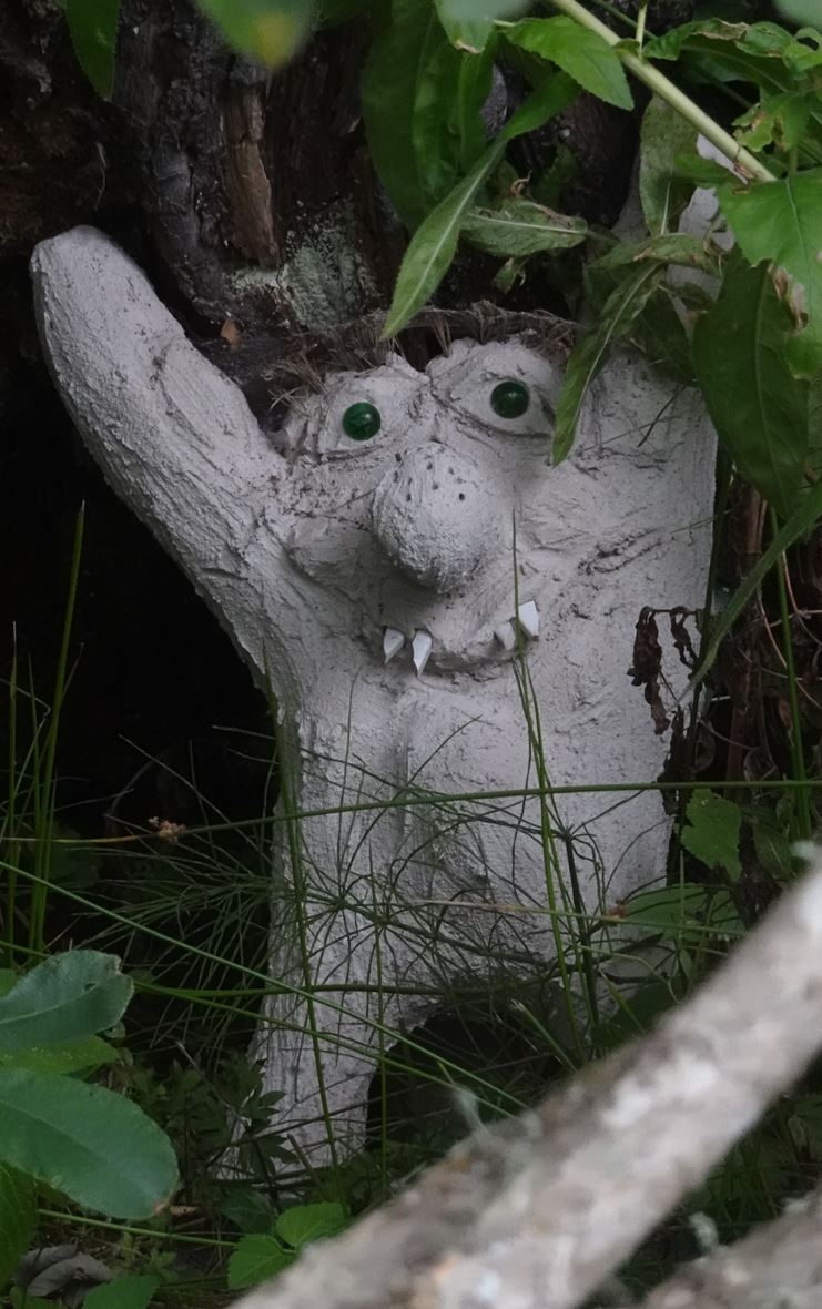 El domingo pasado nos quedamos en la isla de Hälsö, en el archipiélago de Gotemburgo, explicando el hallazgo de las esculturas de trasgos (en cemento modelado), obra de Anders Nilsson. Para concluir de fundamentar mi hipótesis sobre las dos series (trasgos & gremlins) de sus más de veinte obras situadas a lo largo de un camino boscoso, voy a concluir hoy con la presentación de los segundos, los marrulleros de ojos verdes y dientes puntiagudos.