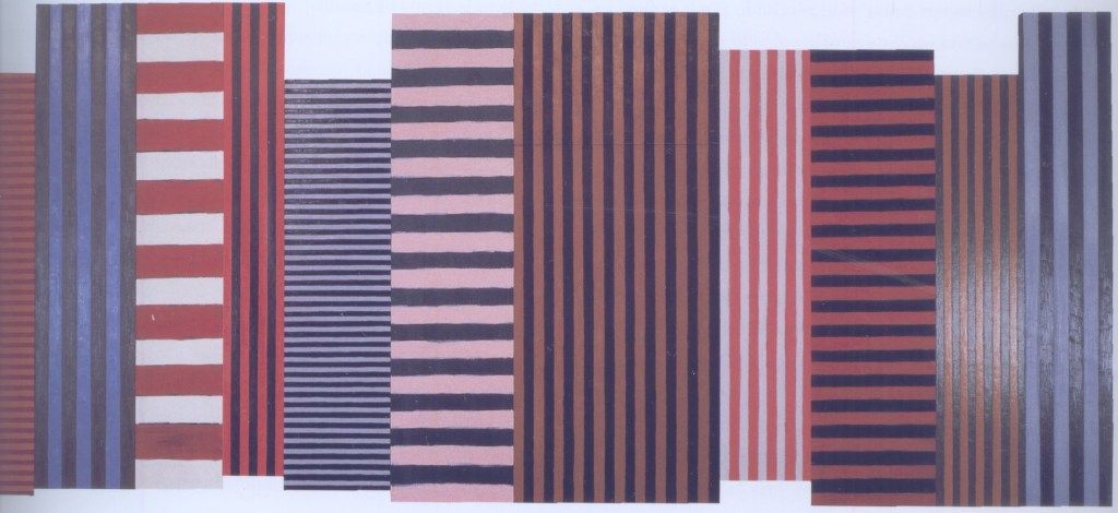 En ese vasto paisaje, de suaves praderas y masas rocosas, Sean Scully, despliega la écfrasis escultórica de su anterior obra pictórica, recurriendo a objetos encontrados de la producción industrial en metal y madera. Pienso que en ello hay una vuelta a sus primeras inspiraciones formales de aquella ciudad de Newcastle («sólo se puede ver lo que está ahí») donde se formó como artista.