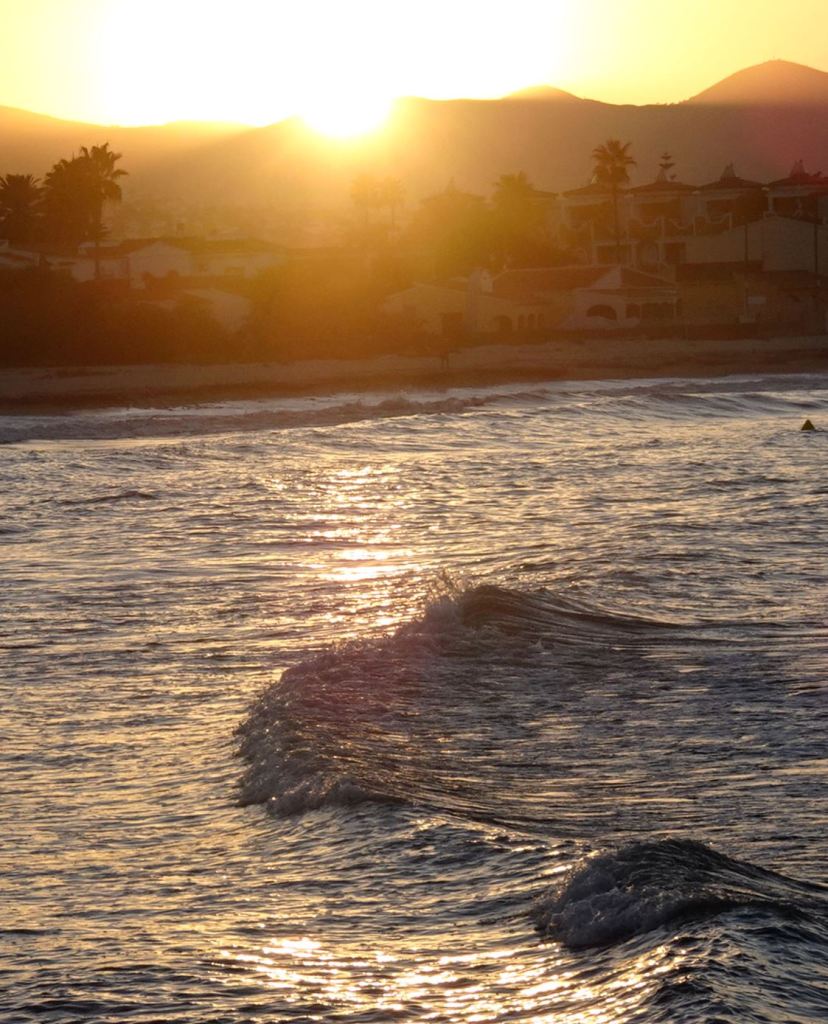 Hoy se ha hecho tarde y se me ha ido el santo al cielo, así que recurro a algunas fotos del paseo de ayer por la playa de la Almadrava, durante la hora postrera del sol. Hacia el norte se destaca la silueta del Mondúver.
