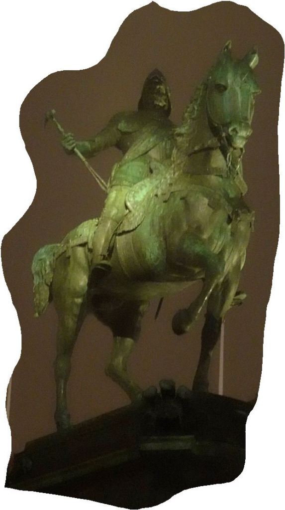 Poderoso Karl IX, poderoso y ecuestre como nuestro Francisco Pizarro que en toda mi niñez y extendida juventud ha estado cabalgando en el atrio imponente de la catedral primero y luego pasó al café Haití en una placita en una esquina con el Palacio de Gobierno (‘la Casa de Pizarro’) hasta que hace unos años lo llevaron a pastar a la explanada Chabuca Granda a espaldas de palacio custodiando las excavaciones de las Murallas de Lima. Los rojimios han dicho siempre lo peor de lo peor encarando y renegando del Conquistador y matón extremeño.