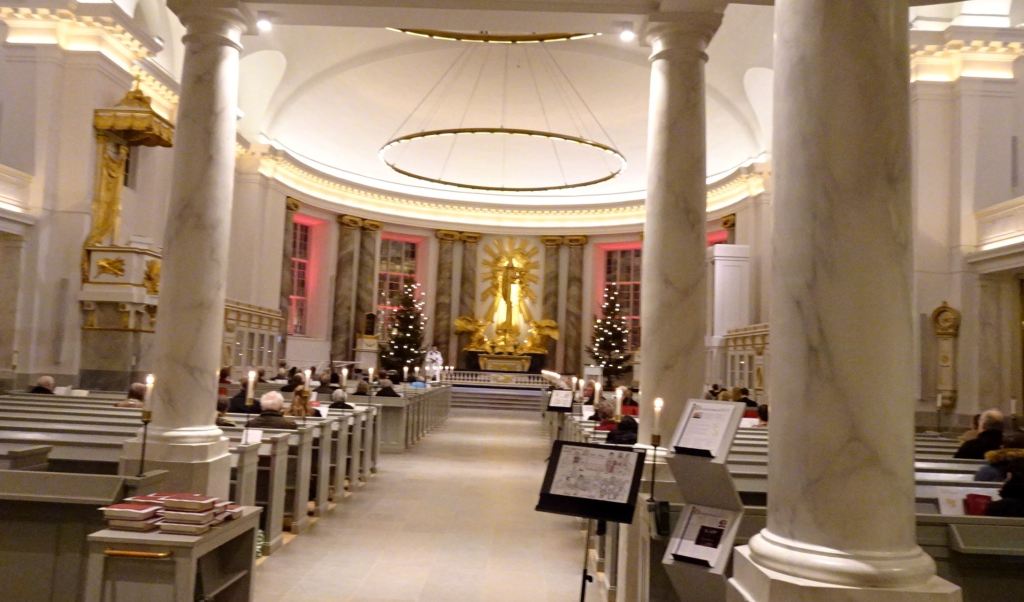 En todo caso, cuando la multitud se había retirado para prepararse en casa al cotillón de despedida del infeliz 2021, pude, antes de volver a casa, dar un refrescante paseo por el centro desierto de Gotemburgo. No obstante, la liturgia de las 18:00 horas en la Domkyrka (la catedral) estaba por comenzar. Junto a la entrada hay estos días un belén de tamaño natural que representa a una sagrada familia que evoca a tantas familias de refugiados de las guerras de Oriente Medio.