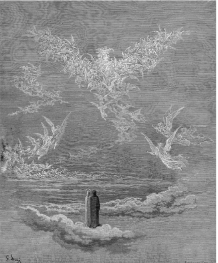 Esas miríadas de almas, brillando como rubíes, acaban por formar un águila, símbolo de la justicia divina.