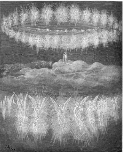 Dante no consigue sostener la mirada ante el brillo del cielo en que brillan los espíritus bienaventurados. La aparición de Beatriz viene a ayudarle a continuar la ascensión.