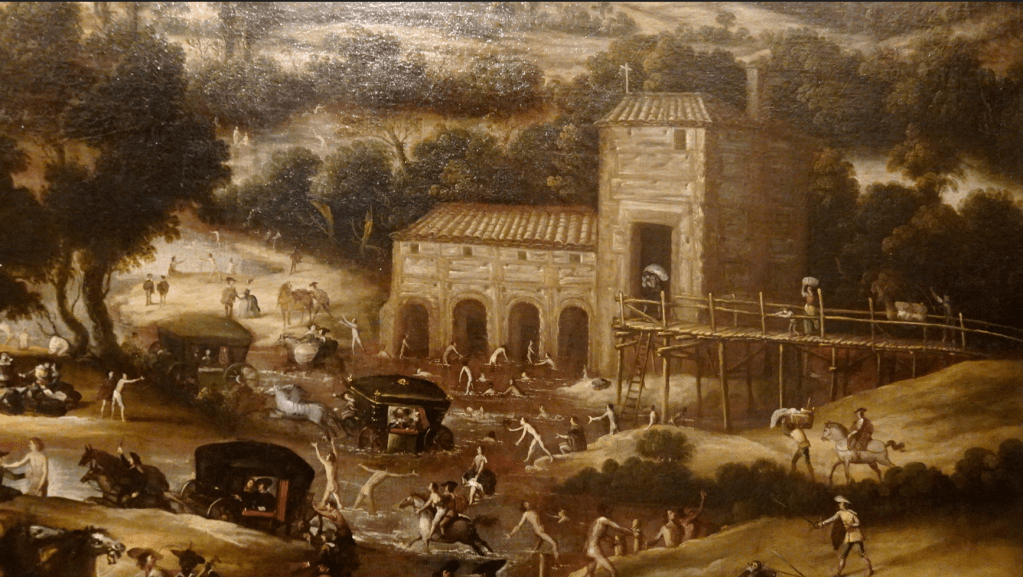 Baños en el Manzanares junto al «Molino Quemado», óleo atribuido a Francisco Castello, 1634-1637, detalle. Museo de Historia de Madrid.