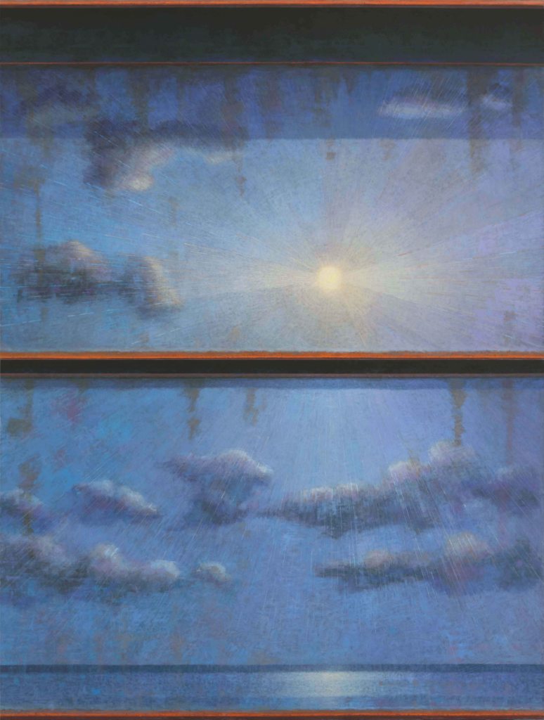 Un año antes ya había realizado un cuadro en el que una cortina de oscuridad intenta cancelar un cielo luminoso manchándolo de precipitaciones mugrientas, como si una ventana olvidada nos velase el mundo