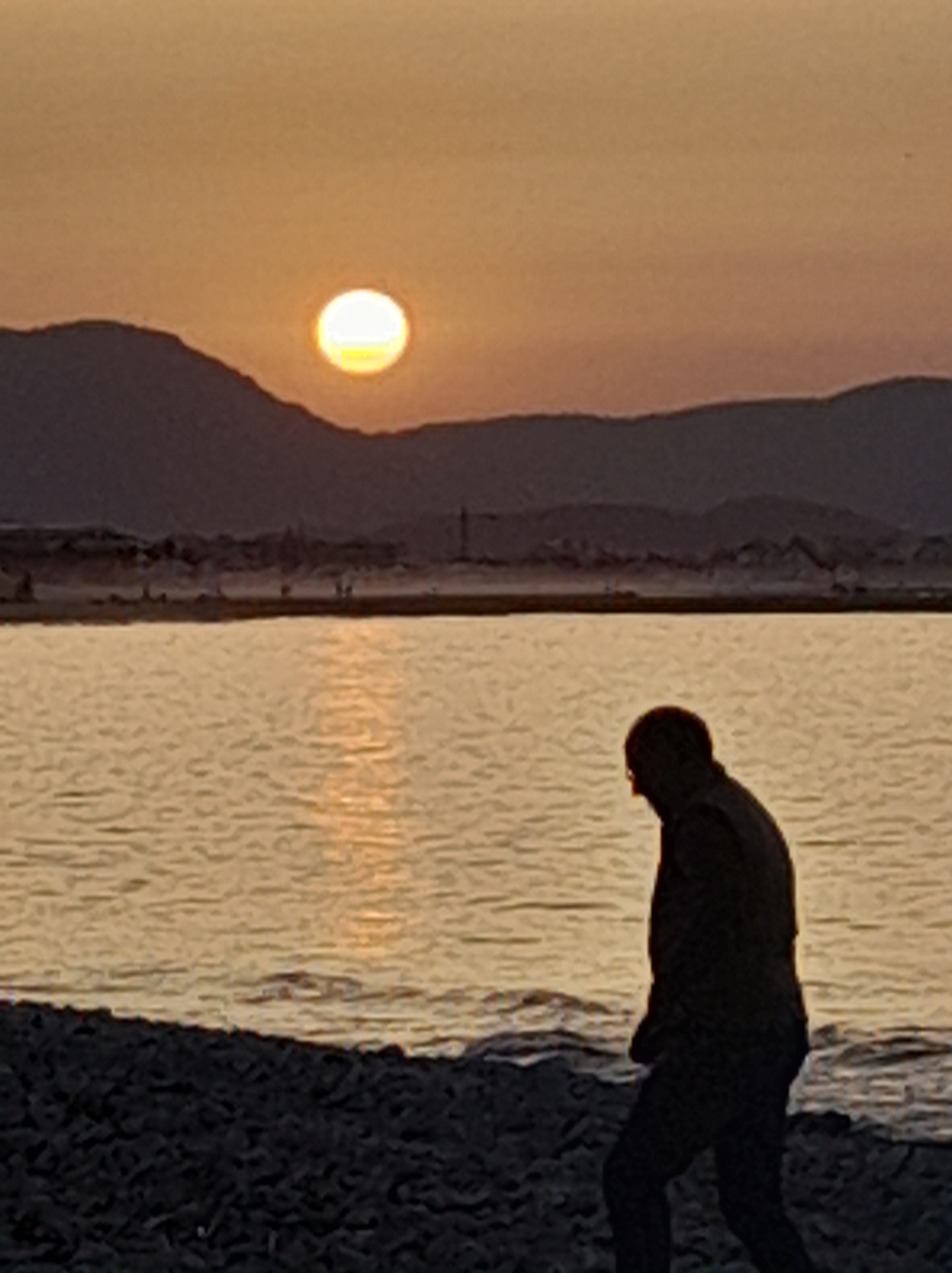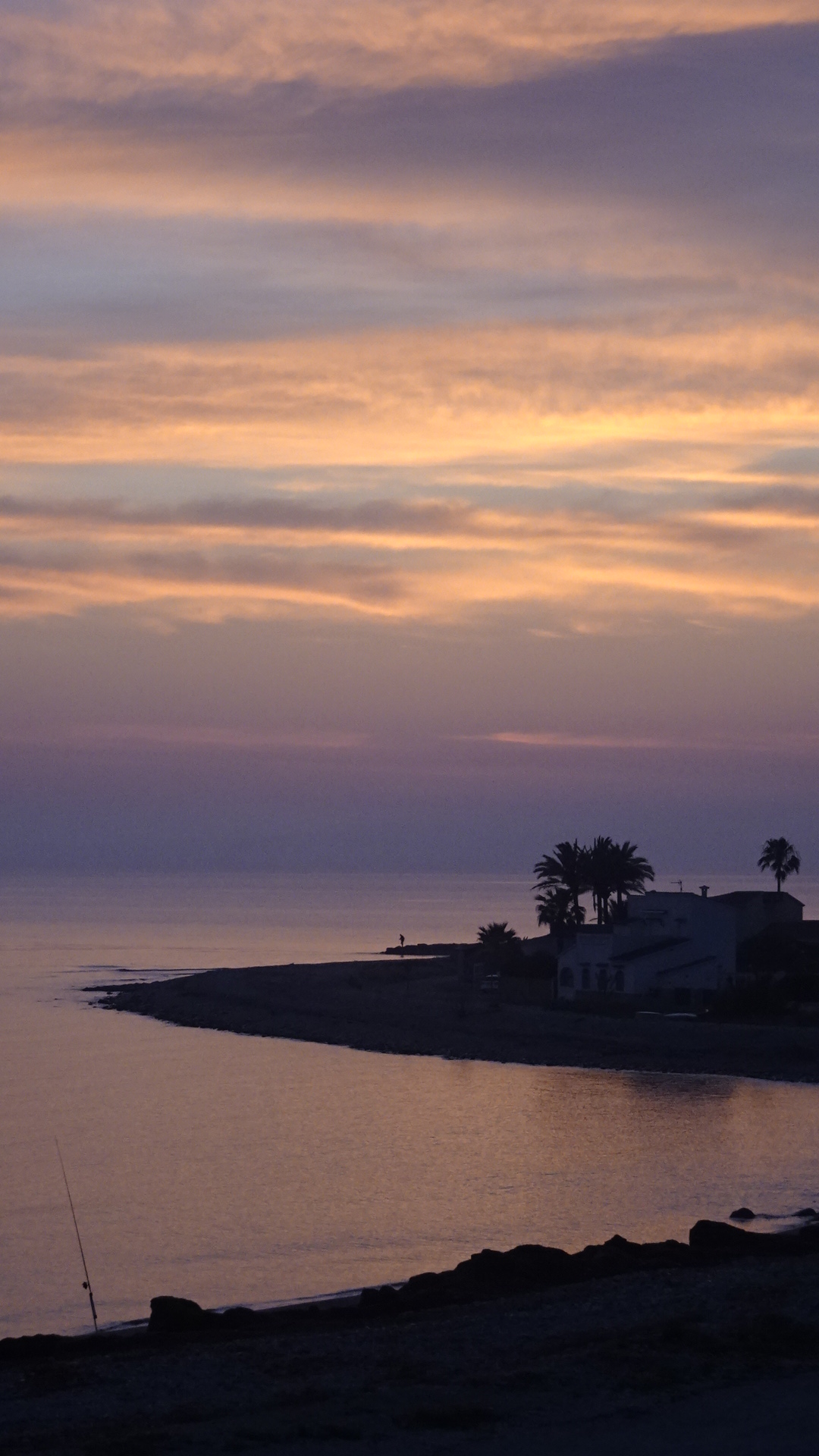 Querido Bernardo, la de la alborada es de la mañanita antes de que el sol saliese (en el oriente de la playa), la última esta tomada (calidad menor pues hecha con el móvil) cuando el sol iba bajando por el lado poniente de la playa.