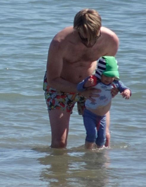 Con un padre orgulloso del hijo en un mar en calma que pareciera también reír