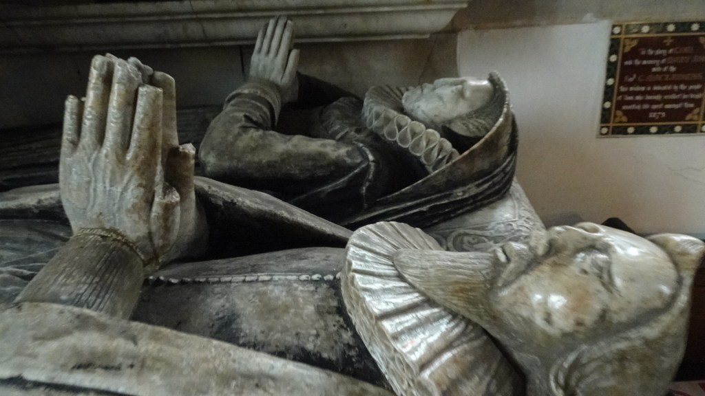También atrajo mi atención el sepulcro policromado de Robert Meverell (d. 1626) y su esposa,