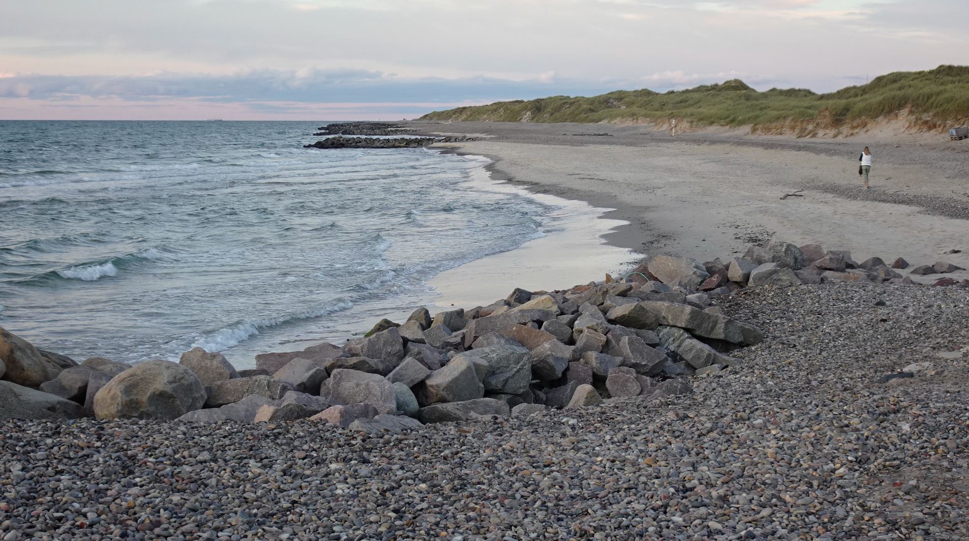 Una orilla bordeada de altas dunas que protege de los vientos a Højen o Gammel Skagen («Viejo Skagen»), antiguo poblado de pescadores hoy parte de la municipalidad de Skagen.