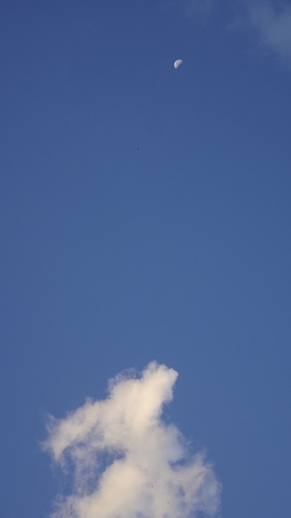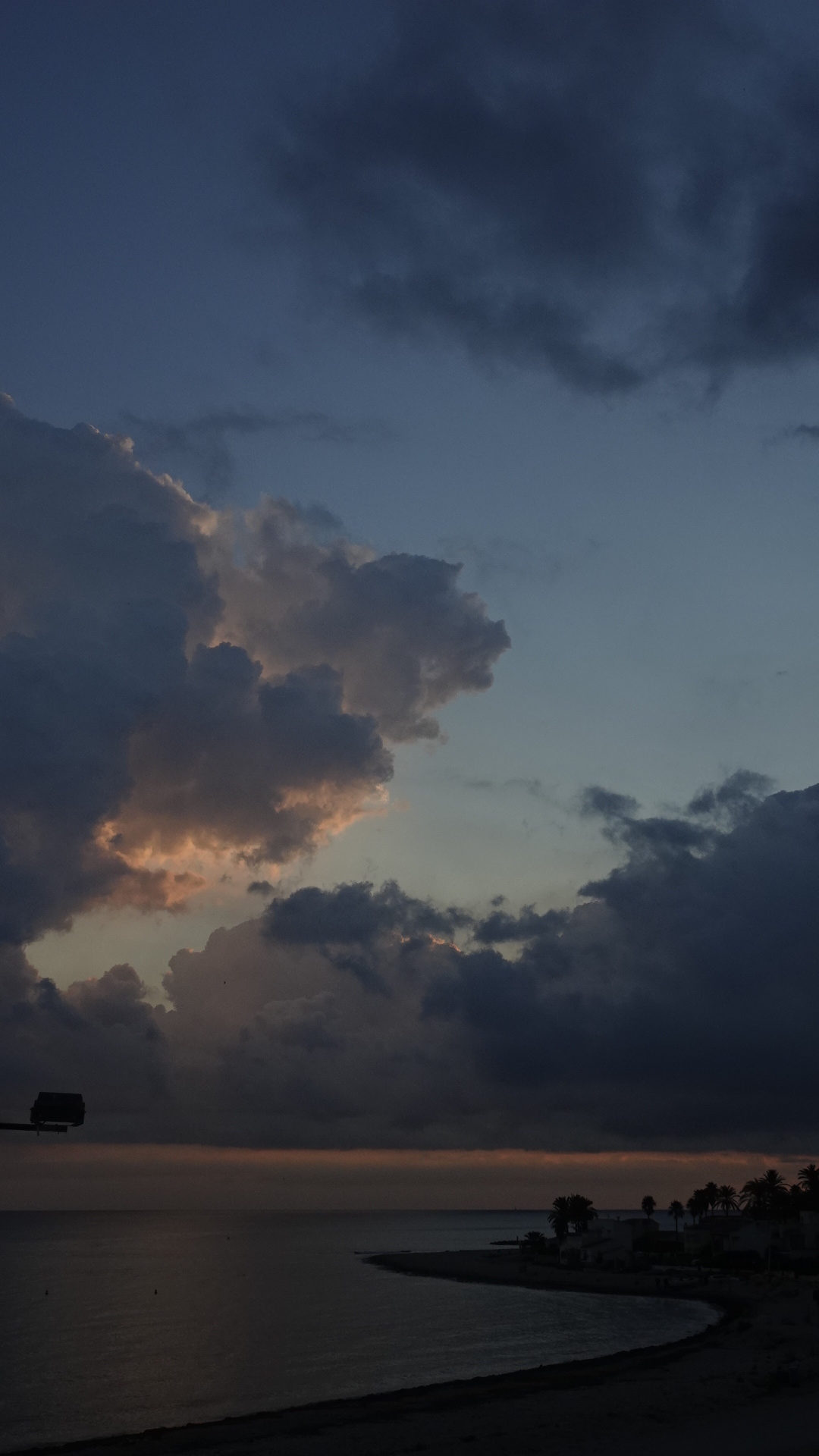 NOTA: todas las fotos las he tomado del lado del mar, excepto la de la nube con la luna que corresponde al cielo del lado de los montes a las 7h. 29m. y 14 s.
