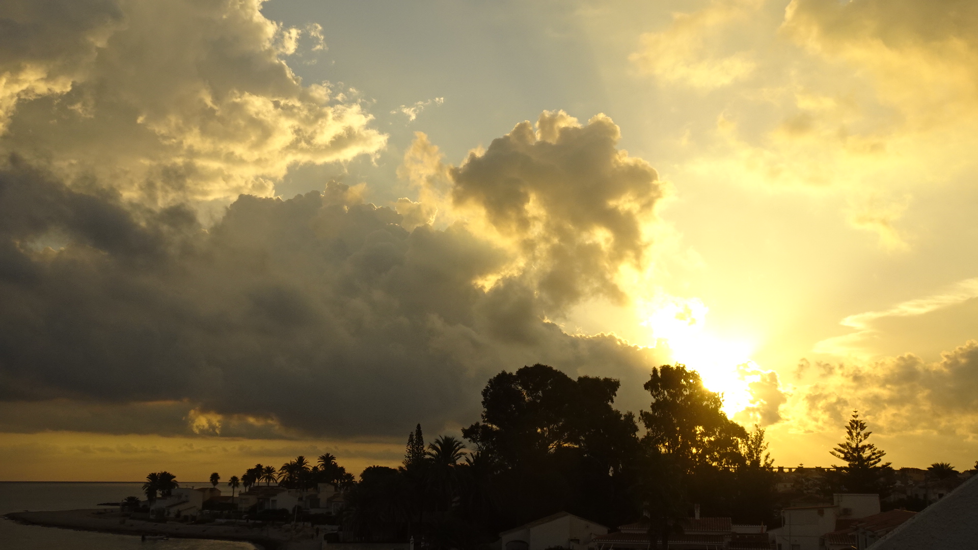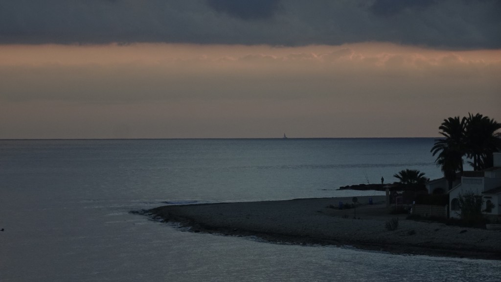 Ayer amanecía como a menudo suele hacerlo en las playas de la Marina Alta cuando el pronóstico del tiempo es variable y el sol juega al escondite con los cumulonimbos.